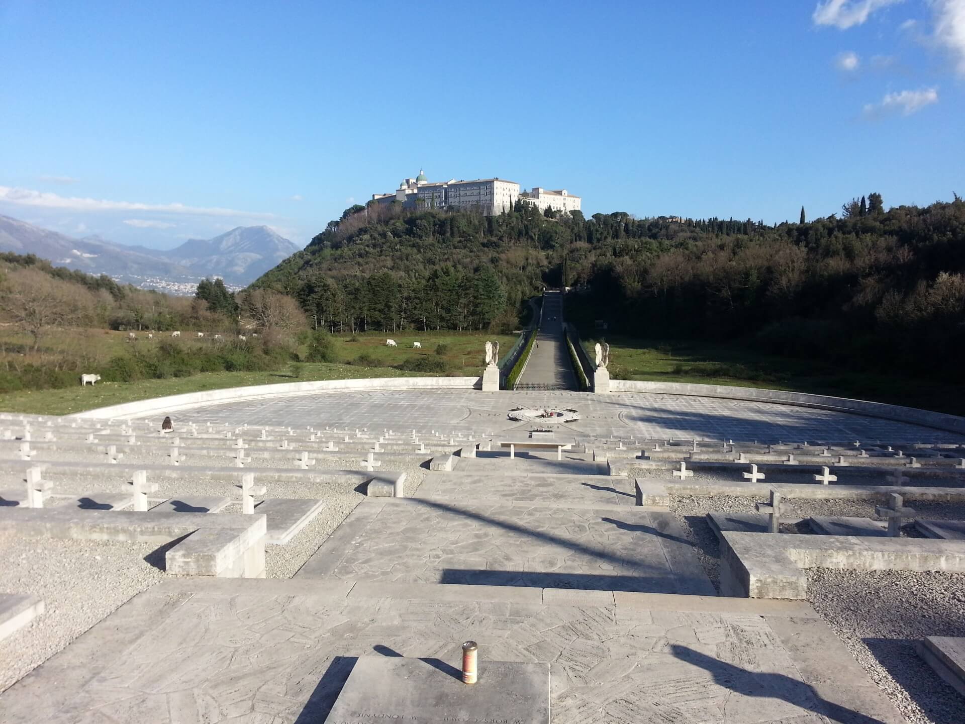 The Abbey of Montecassino was founded by St Benedict in the VI century. Unfortunately, it was almost completely destroyed during the Second World War. One of the biggest battles took place here in the mountains, so we find countless military cemeteries of the last war in the surrounding area.