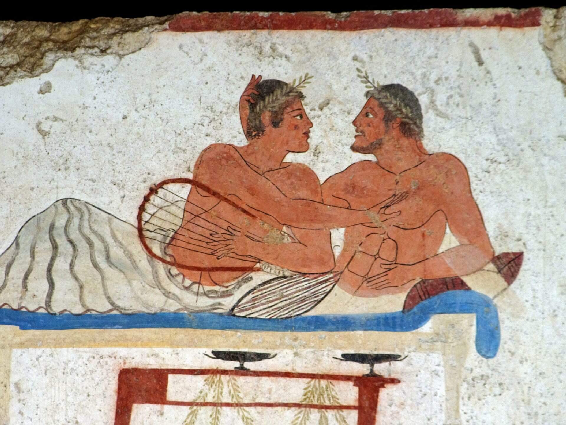 Around 600 BC they moved to the plain and founded Poseidonia-Paestum, on the left bank of the Sele river. Since their arrival, the settlers took care to divide the spaces: the living quarters were clearly distinguished by a large central strip intended for public functions. The latter, in turn, was divided into three areas: those to the north and south, dedicated to the deities, where we can still admire the three majestic Doric temples today; the central one, reserved for political and commercial activities (agora). The agora, that is the main square of the Greek city, was its beating heart. The south side of this open space, in Roman times, was chosen to host the Forum. Two symbolic monuments of the political image of the city were built on the agora. The first, defined as “heroon”, is a chamber structure partially excavated in the rock around 520 BC. C. and built in honor of the mythical founding hero of the colony. The building was respected by the Lucanians, while the Romans, upon their arrival, built a rectangular enclosure, visible today, and covered it with earth, putting an end to the cult. Inside, an exceptional set was found, preserved in the Archaeological Museum. The second building, the circular ekklesiasterion, was built around 480 BC. C. to accommodate male citizens who gathered to discuss political issues.
